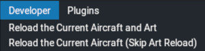 When you select a new aircraft that has XLua scripts, then XLua will load and run your scripts first, before the *.acf file or any 3D objects are loaded. Further, if you have multiple modules, then those will be loaded in random order. The loading of scripts before the aircraft is loaded is important so that all datarefs are processed first and elements of your aircraft simulation, especially 3D animations have data to bind to and drive the animations. XLua scripts are also reloaded whenever you reload the aircraft through X-Plane's Developer Menu as shown below.